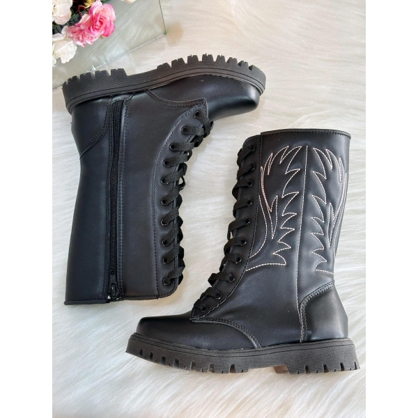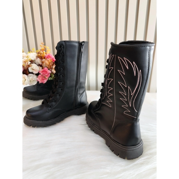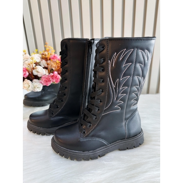 Bota Infantil Boiadeira Cano Alto Preto Cadarço e Zíper