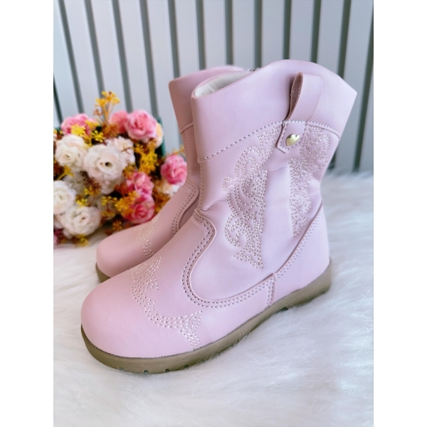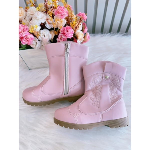 Bota infantil Boiadeira Texana Rosa Claro Com Zíper Luxo