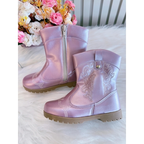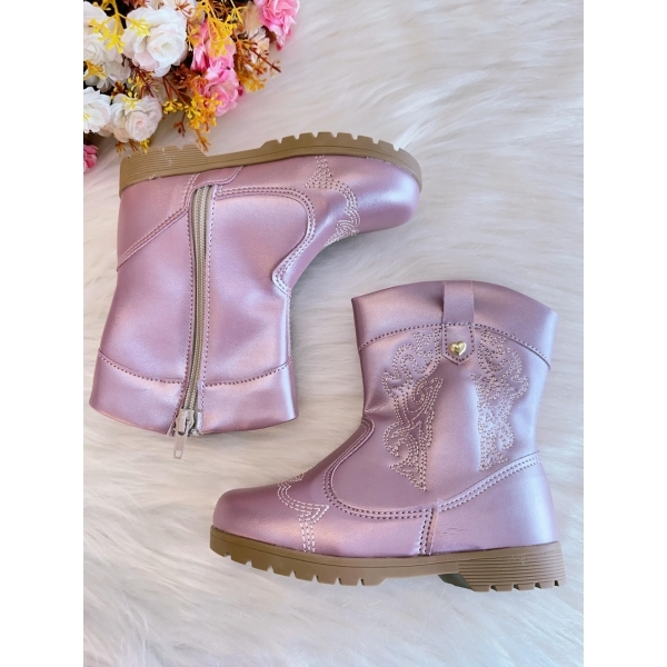 Bota infantil Boiadeira Texana Rose Metalizado Com Zíper Luxo
