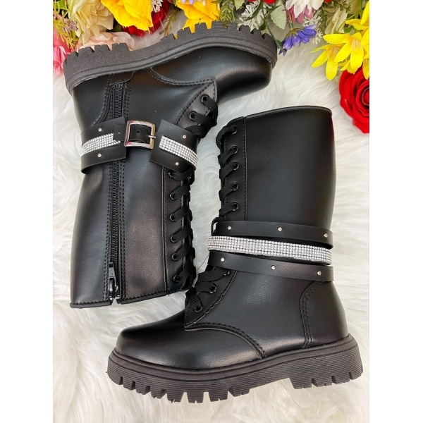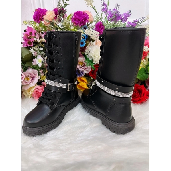 Botinha Infantil Cano Alto Preto Com Cadarço e Ziper