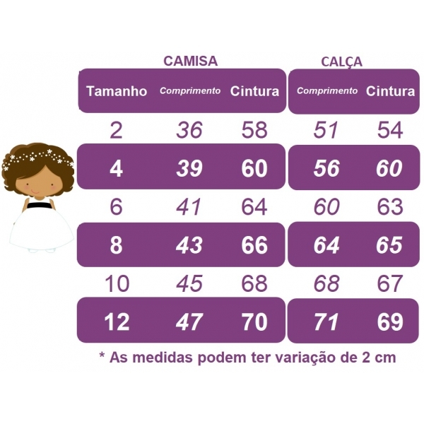 * Compare as medidas da criança com as medidas da tabela que está nas fotos, não compre pela idade, e sim pela tabela de medidas;