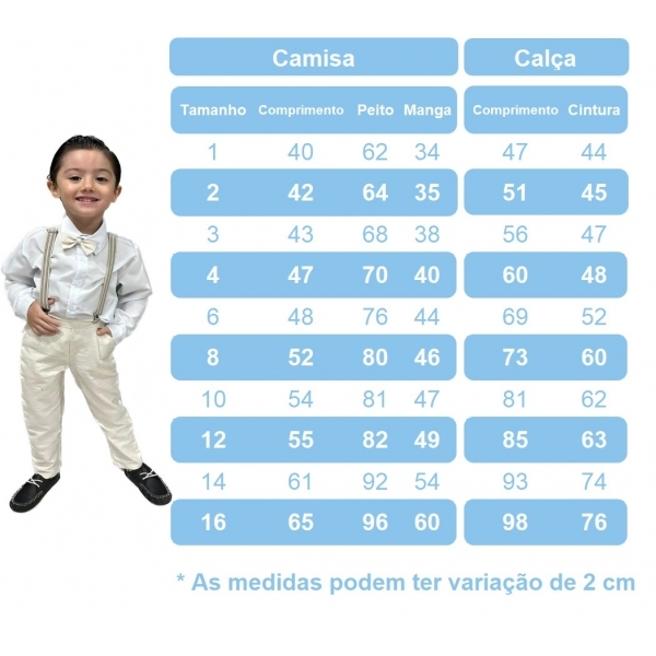 * Conjunto social infantil menino. Camisa e Calça em algodão, com elástico nas costas.