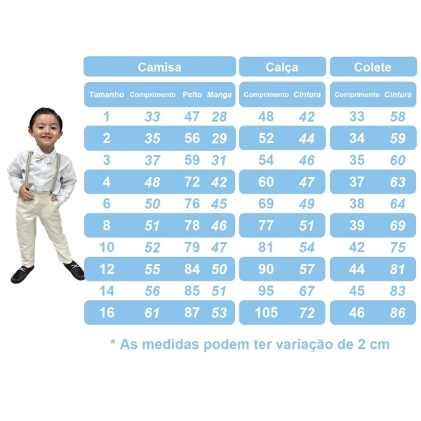 Informações do produto: Conjunto Social Camisa Branca e Colete Calça Grav. Azul Mar.