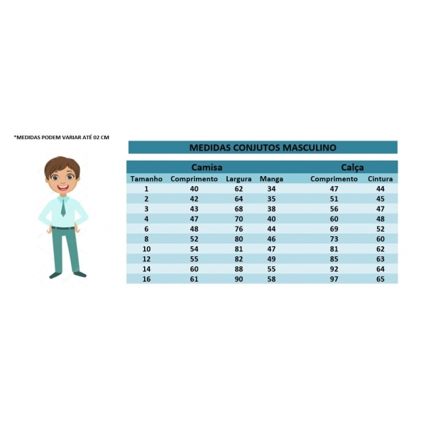 * Conjunto social infantil menino. Camisa em poliéster e calça em algodão. Com suspensório removível e gravatinha.
