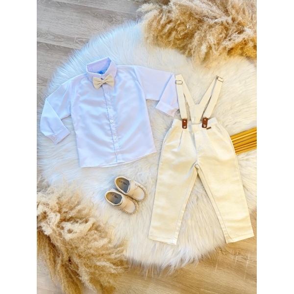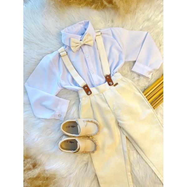 Conjunto Social Camisa Calça Gravata e Susp. Marfim