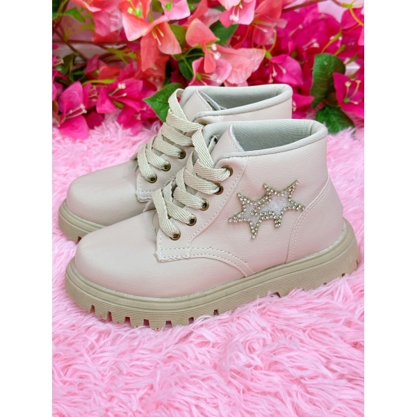 Informações do produto: Coturno Infantil Marfim Com Estrela e Brilho de Cadarço