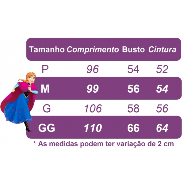 Informações do produto: Fantasia Infantil Princesas Anna Frozen C/ Capa Luxo Festas