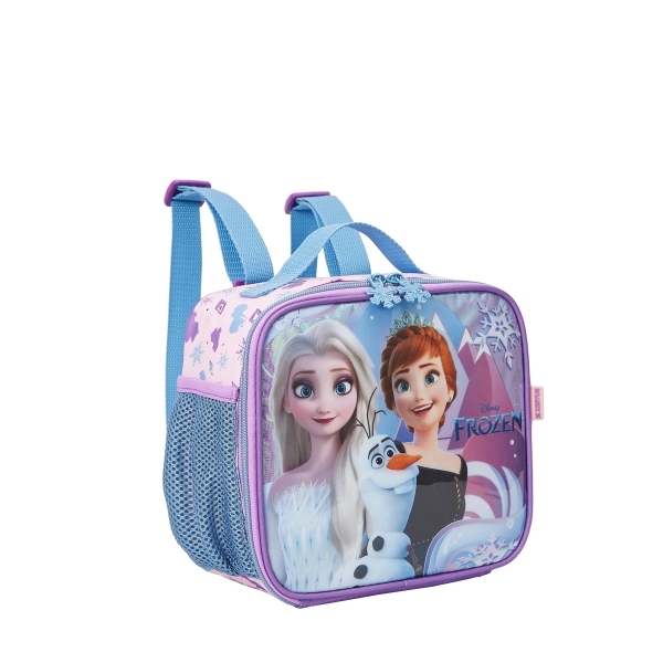 As cores e estampas da lancheira Frozen combinam perfeitamente com as da mochila, fazendo um kit encantador. Possui forro térmico para manter os alimentos frescos e puxador personalizado. Conta com um bolso principal espaçoso, ideal para lanches e snacks e bolso lateral para armazenar garrafas de água ou pequenos itens de acesso rápido.
