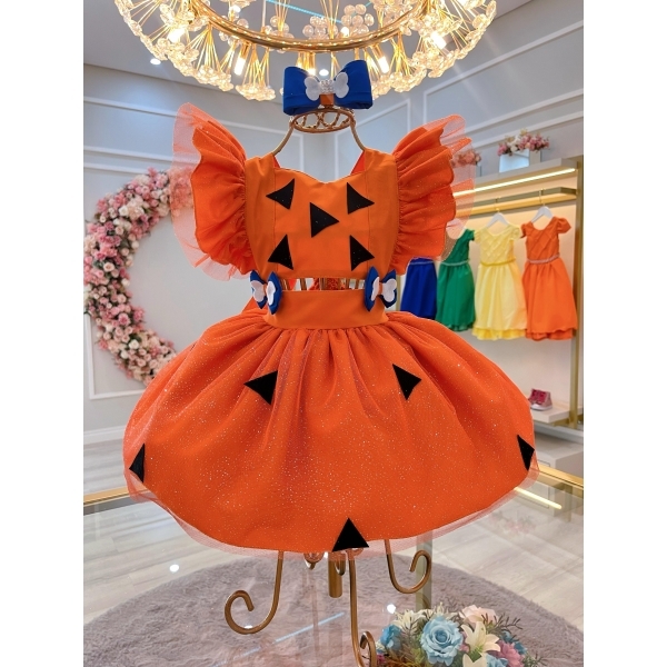 Informações do produto: Romper Pedrita Flintstone Laranja Glitter Festas Luxo