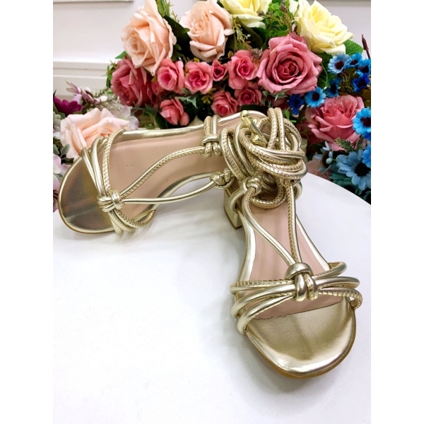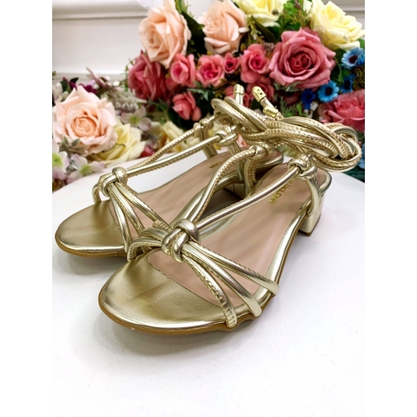 Sandália Infantil de Amarrar Com Salto Ouro