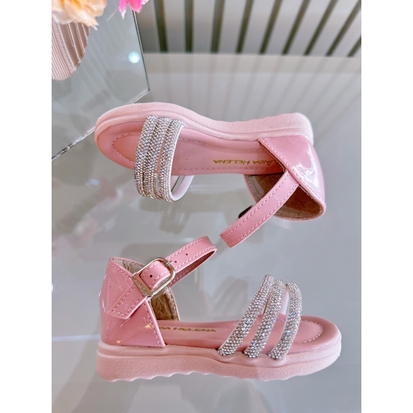 Sandália Infantil Rosa Verniz Com Brilho Strass Luxo