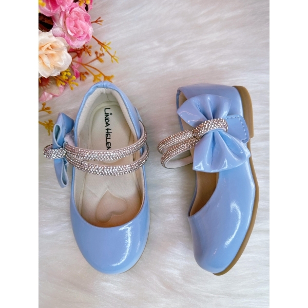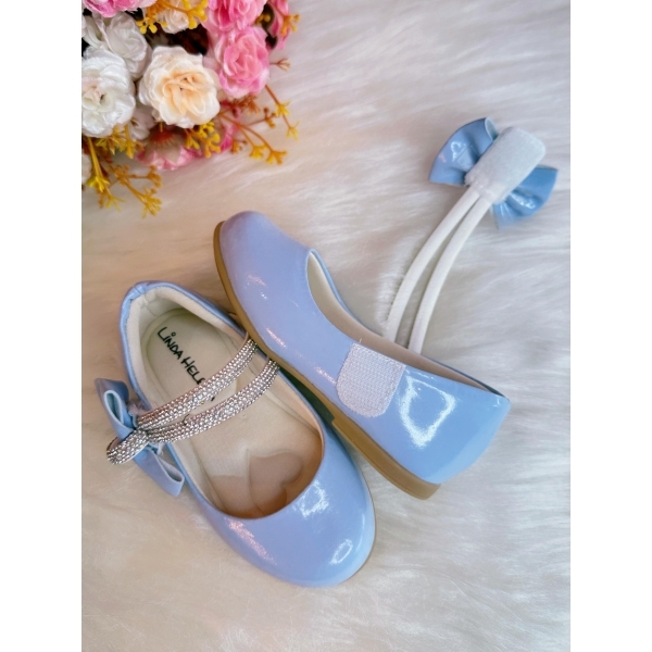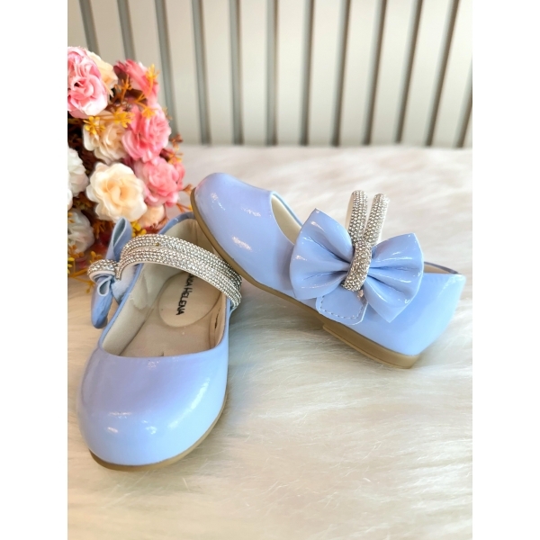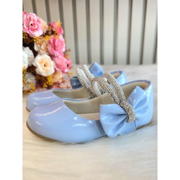 * Sapatinho infantil Azul Claro com Aplique de Lacinho e Tiras com Strass Luxo!