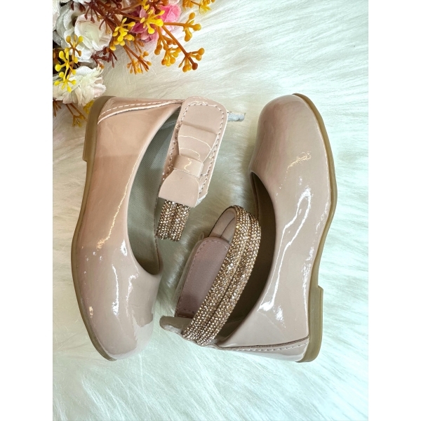 Sapatinho Nude Tiras Com Strass e Aplique de Lacinho