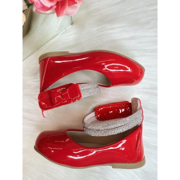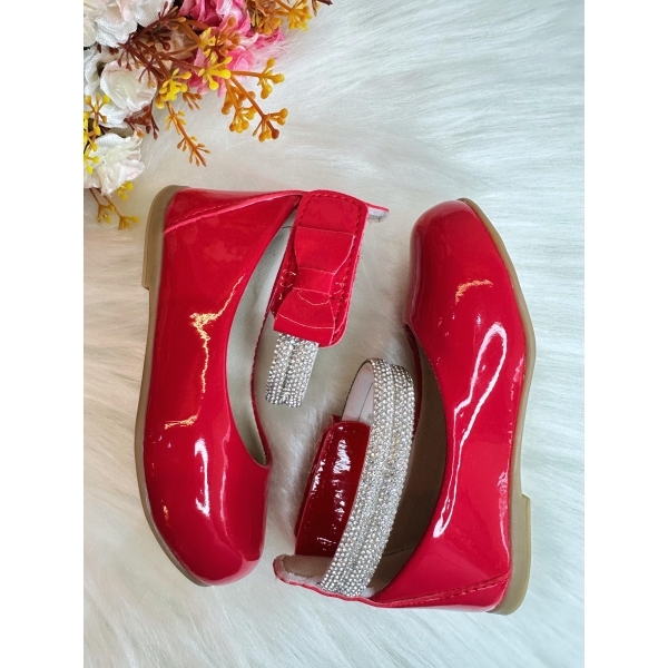Sapatinho Vermelho Tiras Com Strass e Aplique de Lacinho