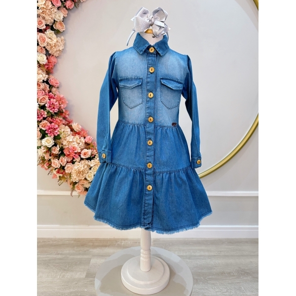 Informações do produto: Vestido Adulto Jeans Azul Com Bolsos Casual Luxo - Azul
