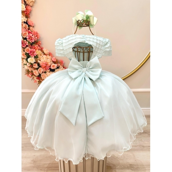 Vestido Infantil Verde Claro Busto Nervura Strass Daminhas