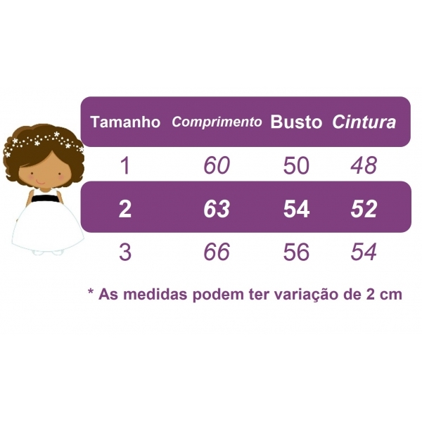 * Laço, tiara e acessórios que acompanham a foto poderão não fazer parte do vestido e são vendidos separadamente;