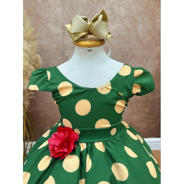 Vestido Infantil Verde Militar C/ Broche de Flor Festas