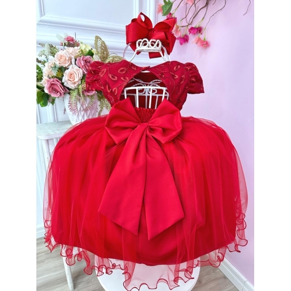 Informações do produto: Vestido Infantil Vermelho C/ Renda e Aplique de Flores Festa - Vermelho