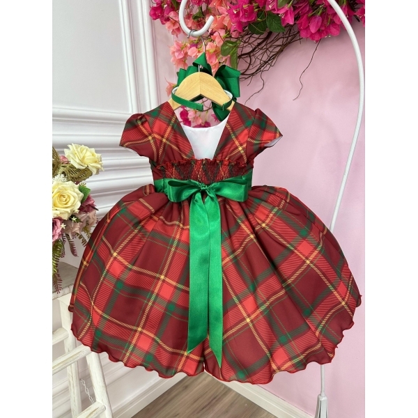 Informações do produto: Vestido Infantil Vermelho C/ Xadrez Natal Festas Luxo