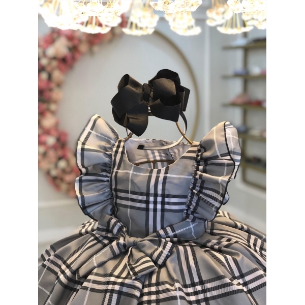 Informações do produto: Vestido Infantil Xadrez Cinza Tartan Festas Luxo